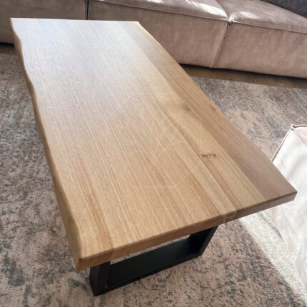 - Stolik kawowy PRATO wykonaliśmy z litego drewna dębowego, a dzięki czarnym, metalowym nogom idealnie wpasuje się do wielu nowoczesnych i loftowych wnętrz. Masywny cztero-centymetrowy blat wyróżnia się naturalną krawędzią drewna, dzięki czemu każdy stolik jest niepowtarzalny.